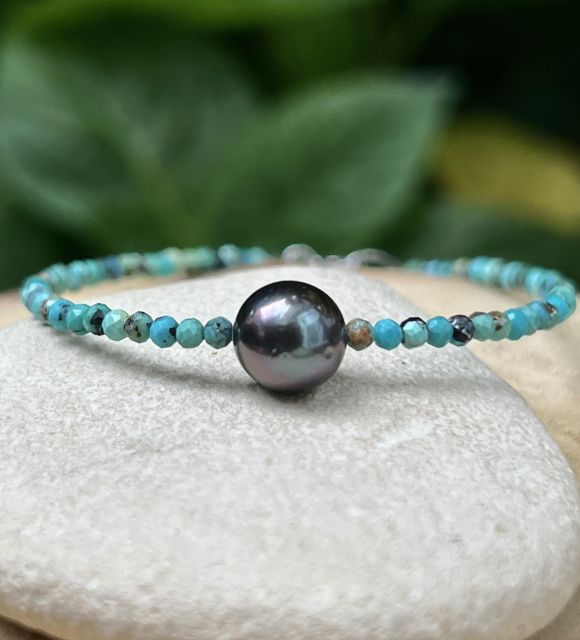 Bracelet en Pierres Naturelles et Perle de Tahiti